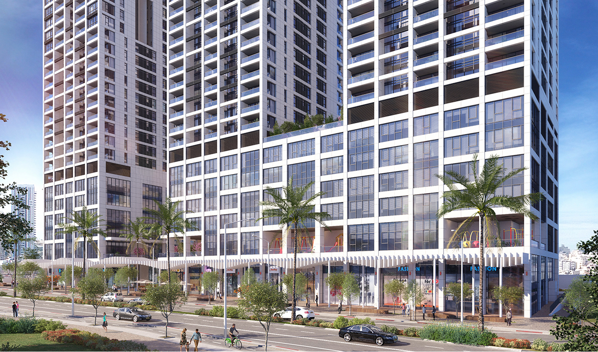 הכוללת 7 קומות של מסחר ומשרדים ומעליהן נישאות 42 קומות מגורים,